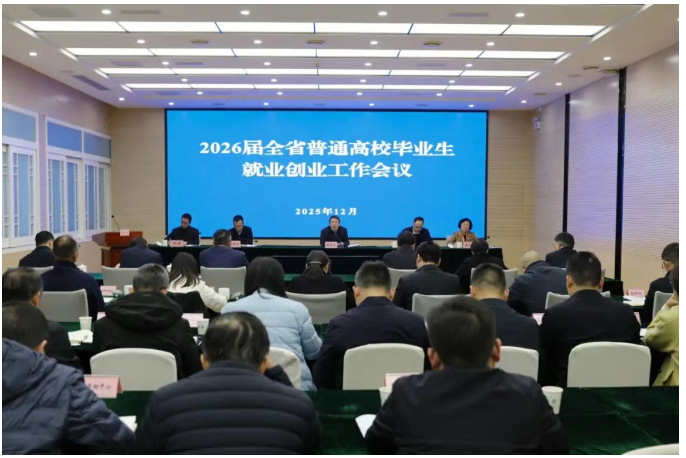 12月9日,2026届全省普通高校毕业生就业创业工作会议召开。省委教育工委书记,教育厅党组书记、厅长陈冠松出席会议并讲话。人力资源社会保障厅党组成员、副厅长全晓锋,省国资委党委委员、副主任游代丽,经济和信息化厅二级巡视员周勇出席会议并作工作部署。省委教育工委委员,教育厅党组成员、副厅长丁念友主持会议。