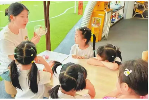 一新建公办幼儿园内,老师正在给孩子上课。