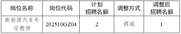 根据《四川职业技术学院2025年下半年公开招聘工作人员公告》的规定及考生报名情况,因部分招聘岗位报名人数低于岗位开考人数,调减1个岗位,共1个招聘名额。现将本次公开招聘工作人员岗位调减情况公告如下: