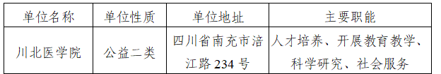因工作需要,川北医学院面向川渝两地范围内的在编在岗事业单位工作人员、公务员(含参照公务员法管理单位工作人员)公开选调工作人员3名。根据《四川省事业单位工作人员流(调)动试行办法》等有关规定,现将有关事项公告如下。