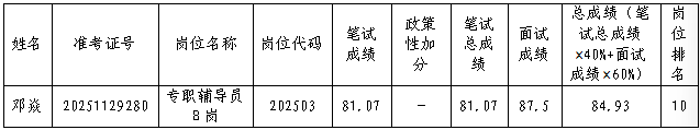 本次公招报考岗位代码202503,招聘名额8名,第八名考生自愿放弃,按公告要求进行递补,符合条件报考岗位代码202503排名第九考生放弃递补,现递补符合条件报考岗位代码202503排名第十考生进入体检环节,具体情况如下: