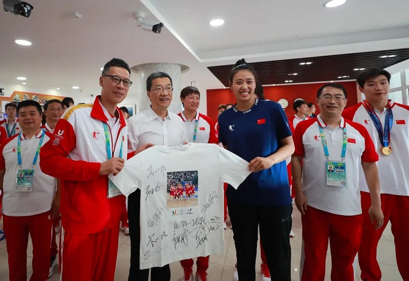 8月8日,教育部党组书记、部长、成都大运会组委会主席怀进鹏赴成都大运会大运村,慰问中国大学生体育代表团、大学生志愿者。教育部党组成员、副部长、成都大运会组委会副主席王嘉毅、陈杰,四川省副省长、成都大运会组委会副主席郑备参加慰问。